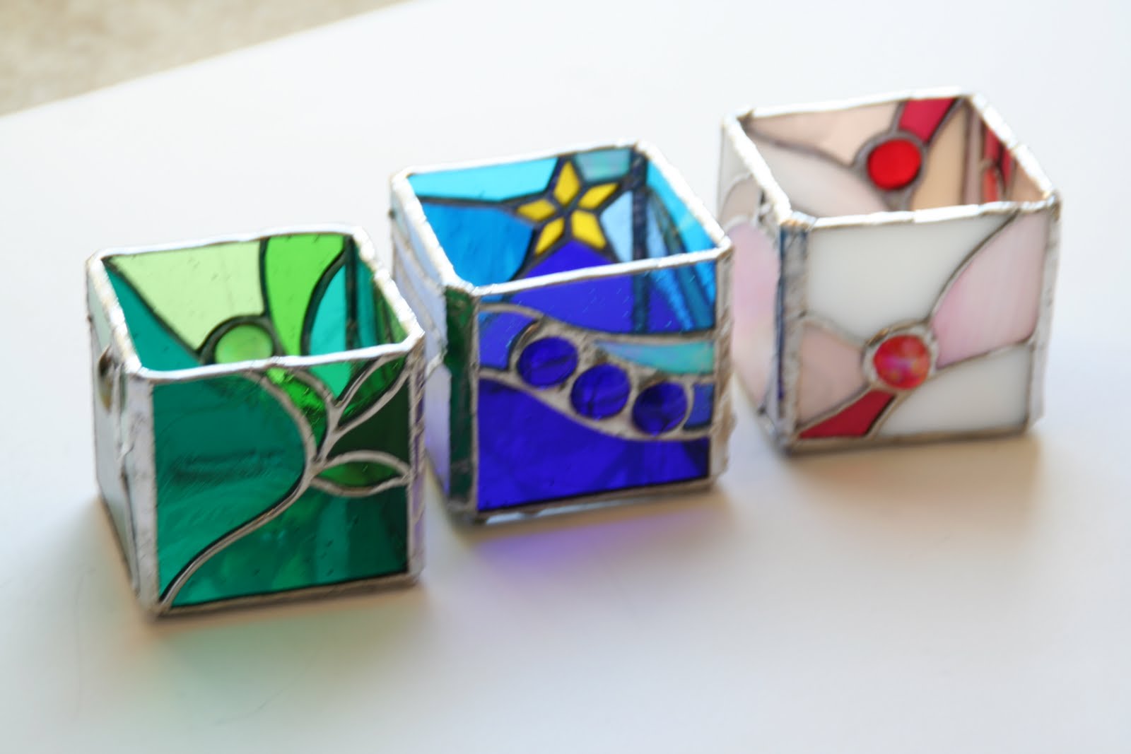 Hand Made Stained Glass Tealight Candle Holder Set by ...