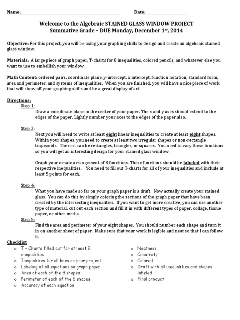 Stained Glass Window Project Algebra 2 Answer Key. After showing students the slide show from the NY Times, I ask students to read the Instructions for the Stained Glass Window Activity on their own. The reason you take math is so you can actually LEARN, not just copy off a cheat sheet.
