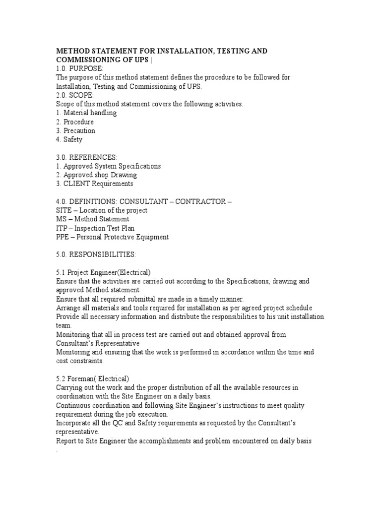 This method statement would be used to make sure the proper way of • GI Duct and Fittings • Fiber Glass Duct Insulation • Hanger and Supports • Duct Adhesives. As mentioned, there are several methods of stained glass installation and which one is right for you depends on what you are trying to achieve. Method statements are widely used in construction as a means of controlling specific health and safety risks that have been identified (perhaps following the preparation of a risk assessment) such as; lifting operations, demolition or dismantling, working at height, installing equipment, the use of plant.